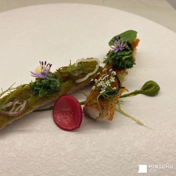 烟熏青花鱼/花菜泥/萝卜苗