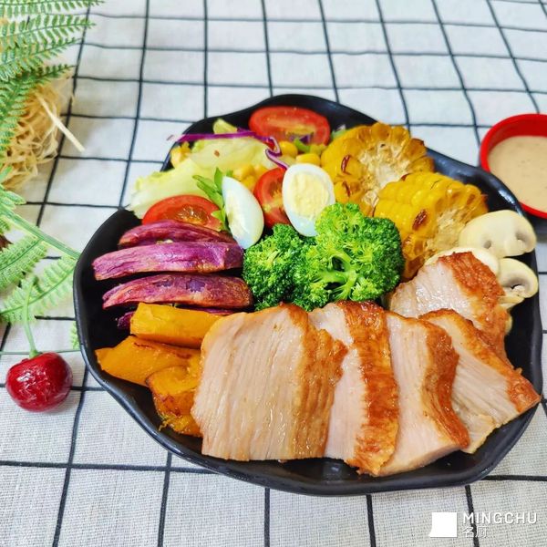 蛋白质,碳水化合物和维生素都比较丰富,搭配了沙拉酱,喜欢口味重一点可以搭配上沙拉酱