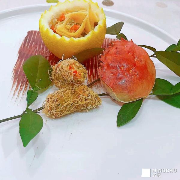 今日食材:香橼(学名:Citrus medica L.),香橼也是做香水的优质材料之一,搭配蟹黄和千丝酥皮风味独特!