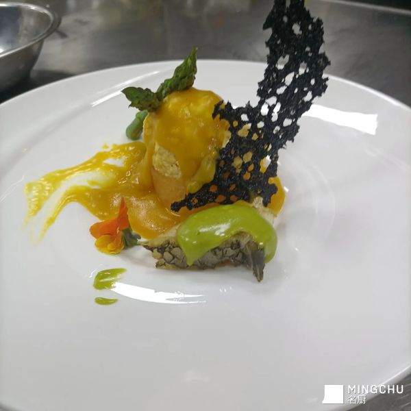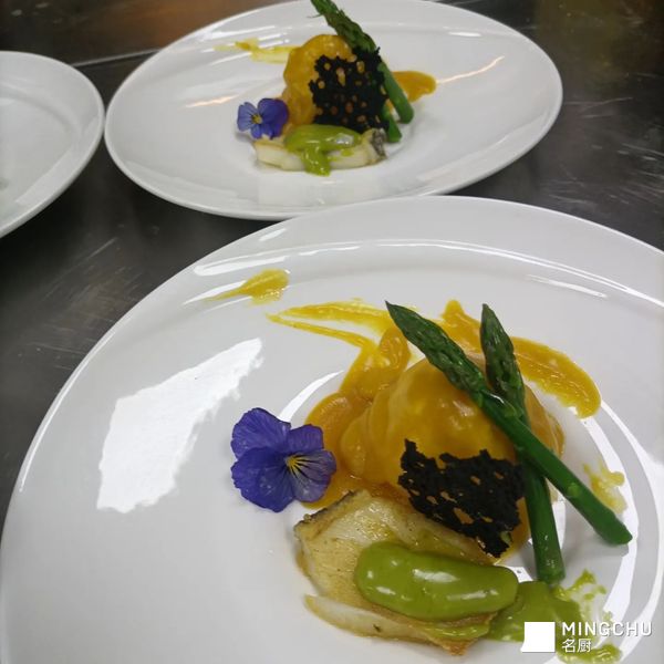 葱油蛋黄酱银鳕鱼配龙虾汁虎虾球