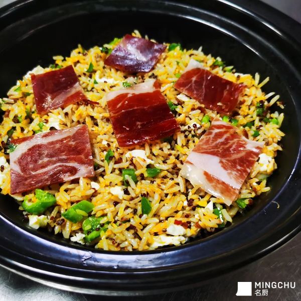 中国的螺丝辣椒、南美洲的黎麦、被称之为西班牙人骄傲的伊比利亚火腿,他们与丝苗米汇聚到一起会而成:令齿舌狂欢的炒饭 #第95期试用 #伊比利亚火腿