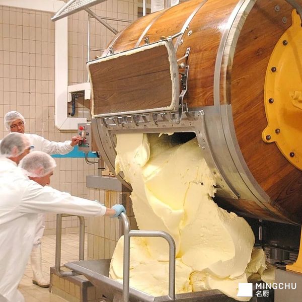 不停地搅拌奶油,直到它的脂肪球状聚集形成黄色的小颗粒后,自然地从黄油牛奶中分离出来-这种黄油的生产方法自公元前4500年以来几乎没有改变过。