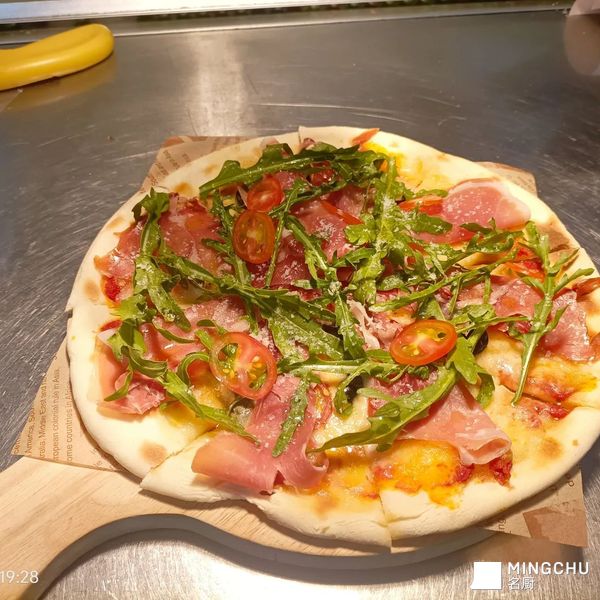 材料:伊比利亚火腿片,芝麻菜,水瓜柳,黑橄榄,红黄番茄,橄榄油,低筋面粉,牛奶,酵母,盐,马苏里拉芝士,黑白芝麻
