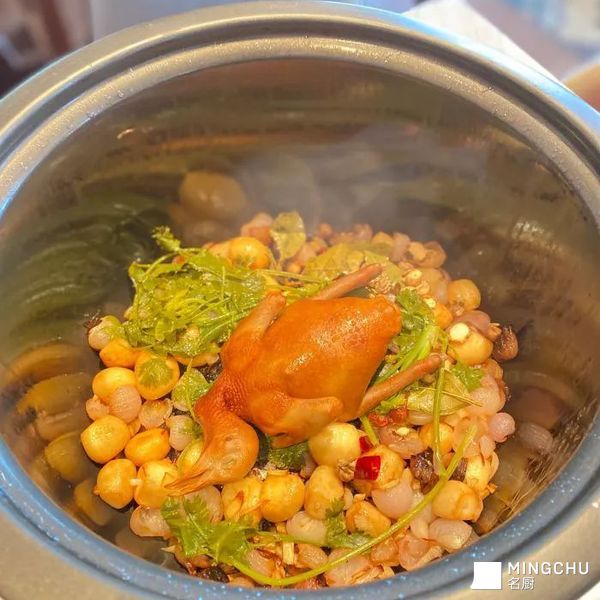 还没上菜的时候就能闻到电饭煲焗乳鸽的香味了, 等到端到桌上的时候,真的是香味扑鼻,因为用了焗的做法,乳鸽的汁水非常充盈,口感也更加细嫩。乳鸽吸收了大蒜、洋葱头等调味料的风味,咸香的滋味也非常足,乳鸽完全吸收了酱汁的美味,而且肉吃起来十分的嫩滑。