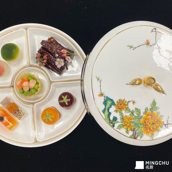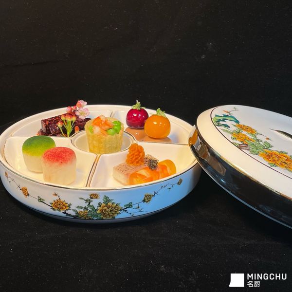 锦绣拼盘是中式意境冷盘呈现风格。分餐位上可以让客人感受到尊重同时更加卫生。这次带来的是五味冷拼盘,五中不同的菜品和颜色的搭配,在口味和口感不同。