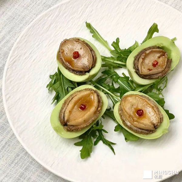 玉女瓜,也叫小青瓜、拇指黄瓜,带着微微的香甜,入口清新爽脆,搭配嫩滑的鲍鱼,妙不可言,制作时将玉女瓜片摆入盘中,作为鲍鱼的底座。鲍鱼采用低温慢煮法,极大程度地保留了食材的营养成分和香气,同时也避免了食材缩水影响品相。菜品莹润清爽,富有立体的层次感。
