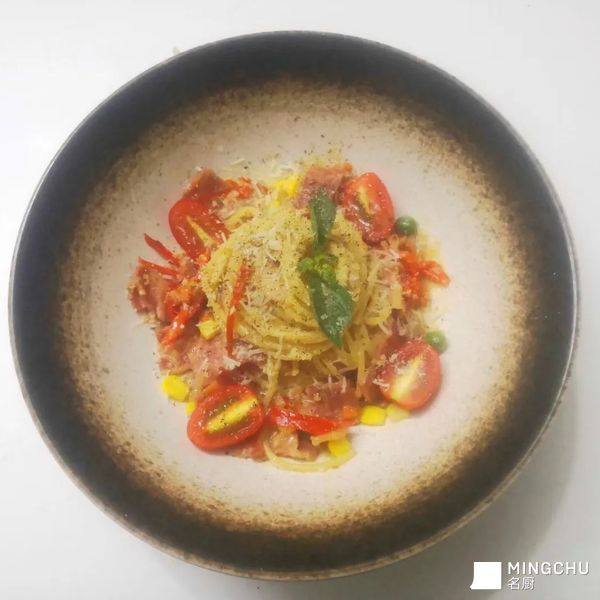 小番茄,多样的菇类都很经典的搭意面,最喜欢吃海鲜意面,酱汁鲜美