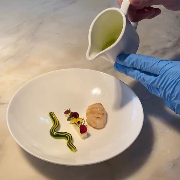 带子/安康鱼肝/酸奶油/罗勒油