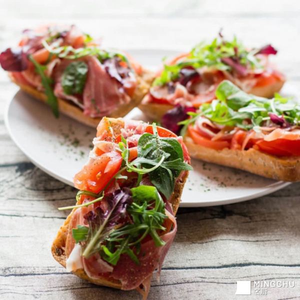 黄油烤洛朗石烤面包 涂抹苏嘉度甜椒涂抹酱 放上西班牙礼赫娜塞拉诺火腿切片搭配混合沙拉。带来丰富多样的味蕾与口感。 #第100期试用 #三明治 #一赋食品 #洛朗 #苏嘉度 #礼赫娜 #菲力