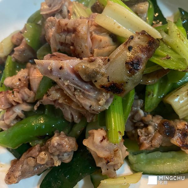爆炒水鱼、鸡、猪生肠