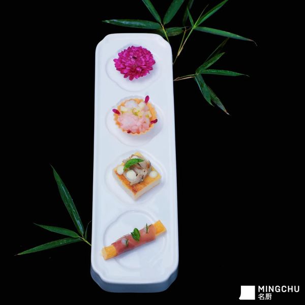 北极甜虾挞,油封青花鱼吐司,意大利风干火腿卷酥皮