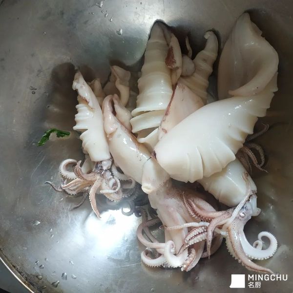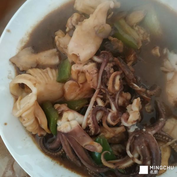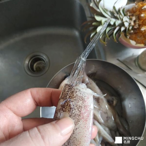 现在笔管鱼都带籽,非常好吃。抽出骨头,划刀,过水。葱油加料酒,胡椒粉,秋油,糖,锅边醋,勾芡,明油,出锅。