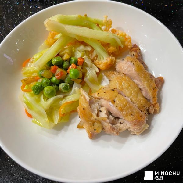雞腿排搭白高豆