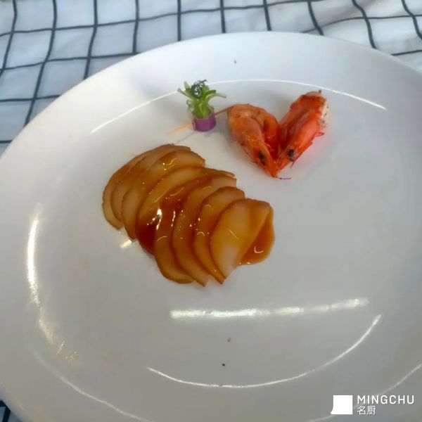 红酒雪梨配虾仁