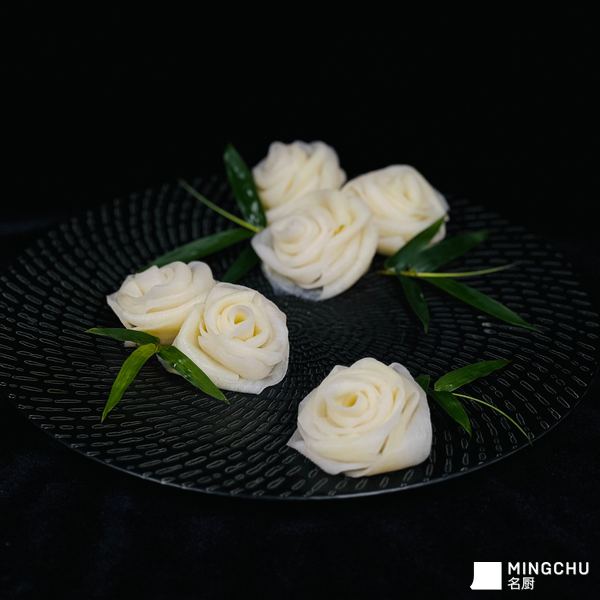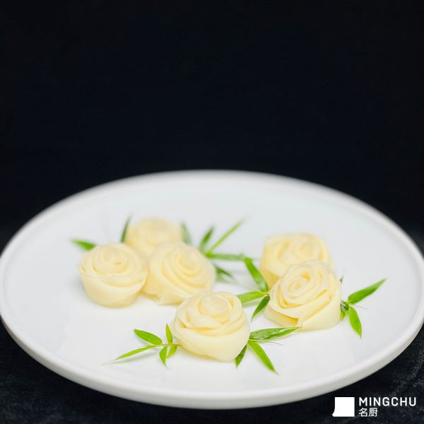 创意无限,把茭白做成玫瑰花的形状,口味酸爽。