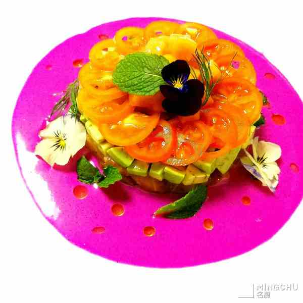 果香鲑鱼塔塔配红心火龙果酸奶油酱