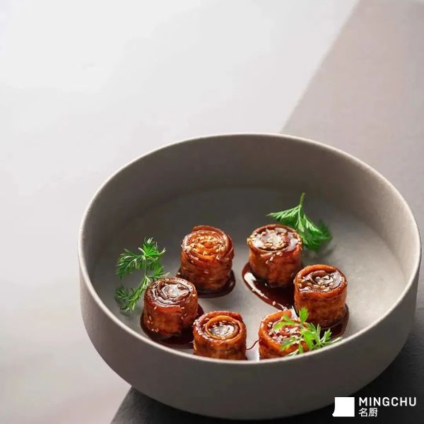打破东海带鱼的传统烹饪“规则”,选用厚薄均匀一致的带鱼手工打卷,再加入特调黑醋汁焖制入味,让带鱼卷的酥脆与酱汁的香甜浑然一体,不动声色间,令人惊艳。