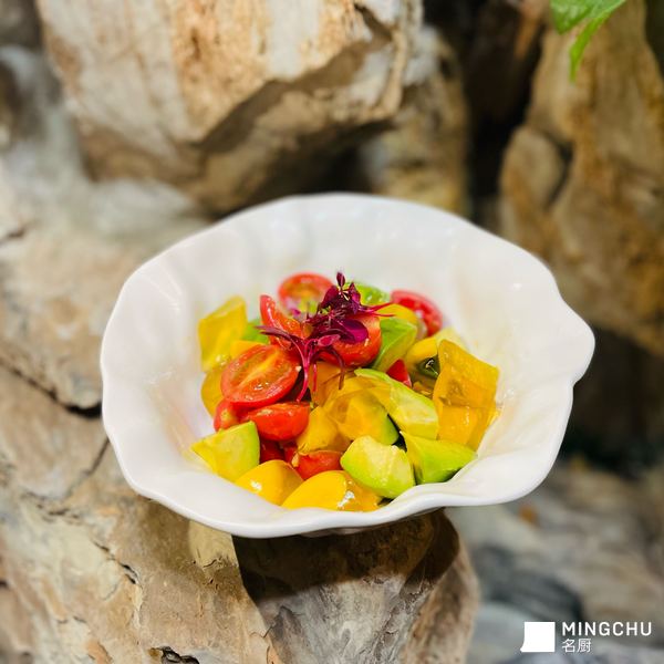 串红番茄、牛油果、黄金变蛋、蒜泥辣椒酱