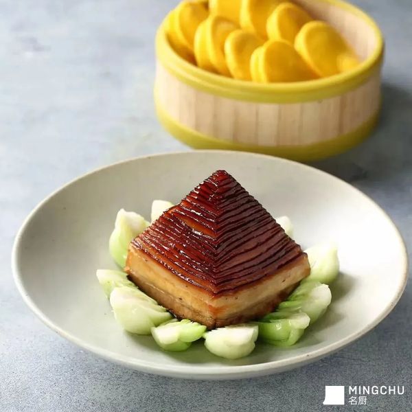 宝塔肉造型别致、色泽油润、香气浓郁,外形似金字塔,经过煮、焖、煎、蒸,五花肉油而不腻、酥而不烂, 梅干菜香气扑鼻、清香爽口,不愧为一道既饱口福,又饱眼福的美味佳肴,摆上餐桌招待亲朋,特有面子。1、五花肉洗净,入老酱汤中煮至七成熟;西兰花洗净,氽水待用;2、煮熟的五花肉用滚刀法切成片,放入碗中,放上芽菜,淋上酱油,入蒸笼蒸2小时;3、肉扣在盘中,用西兰花围边,原汁用生粉勾芡,淋在盘中,与荷叶饼一同上桌即可,老少皆宜。