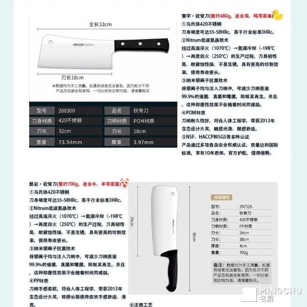 砍骨刀在使用时,一定要垂直发力砍剁,否则容易卷刃,有一定的安全风险。因此,选择一个口碑与质量过硬的品牌,在保证安全的前提下剁精剁好是砍骨刀选择的重中之重。