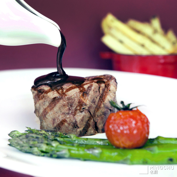 牛里脊,在入烤箱时一定要多放黄油和香草,这样牛肉会有香草的香味,肉质会更嫩。