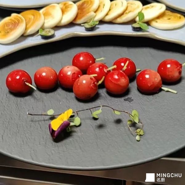 樱桃鹅肝配葱香饼