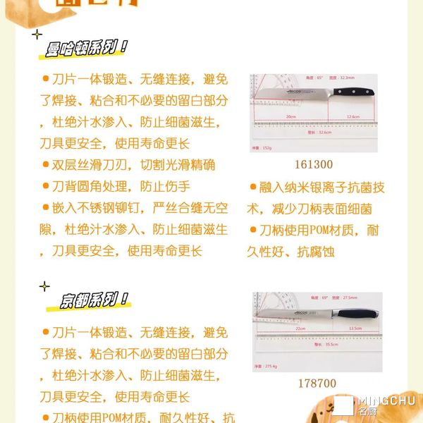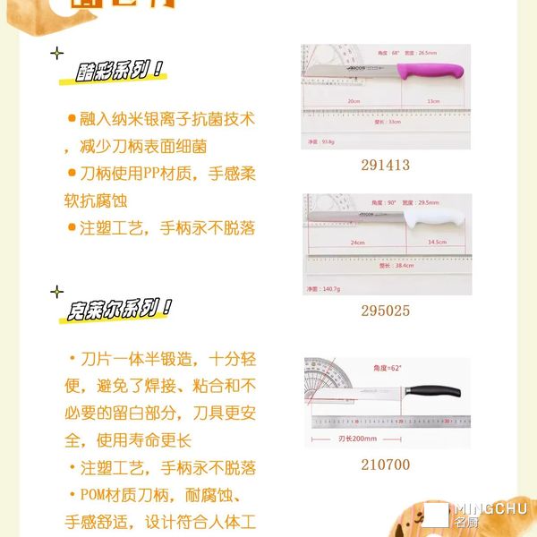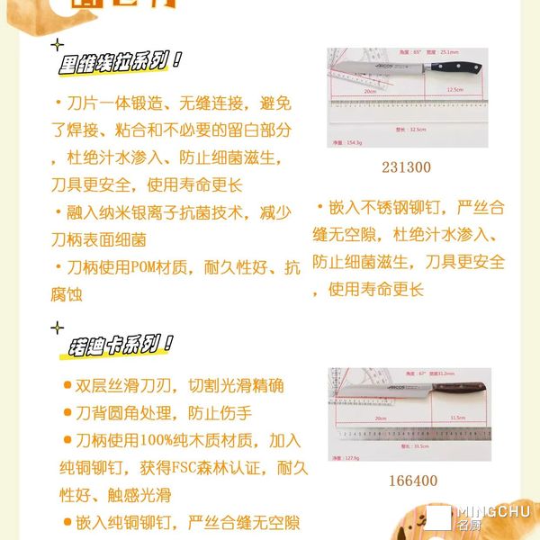 接下来就右滑图片,一起了解一下西班牙进口厨刀品牌ARCOS旗下都有哪些系列拥有面包刀吧!
