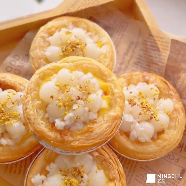 秋意渐浓,连蛋挞都是秋日限定款桂花酒酿+桂花蜜+糯唧唧小圆子做topping,搭配层层酥脆的挞皮,嫩滑奶香的挞馅,三重口感好吃到哭。