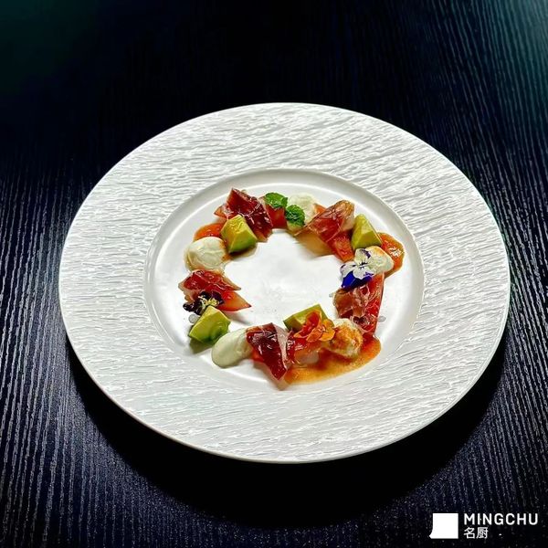 布达拉芝士配番茄甜椒酱 牛油果 伊比利亚火腿