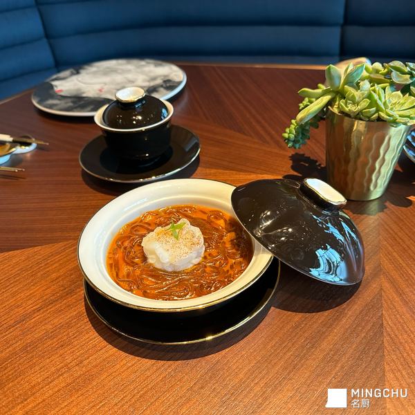 虾球过油锁住鲜甜,山椒去籽留香,手工红薯粉在汤汁中慢慢煨煮,逐渐透亮如记忆中的水晶。最后淋上山椒汁,热气腾起,辣香弥漫
