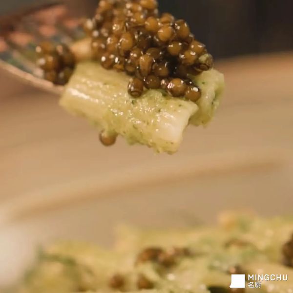 卡露伽9年鲟鱼子酱菠菜西兰花管面