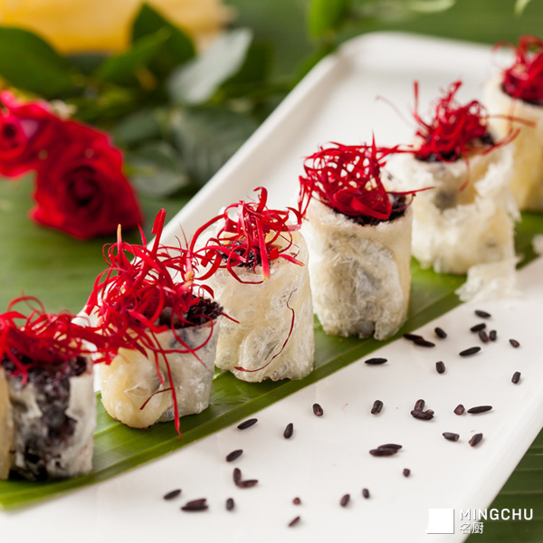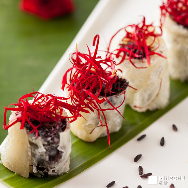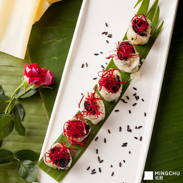 元阳哈尼梯田紫米,是大米中的补品,有“药谷”之称,非常滋补,被称为“长寿米”,尤其适合儿童、老人及孕妇的营养需求。紫米不宜用力搓洗,熟后香甜软糯,十分可口。云南小玫瑰比大玫瑰香味更浓,做成酱料,香醇无比。先炸后蒸的方式可以让紫米、玫瑰、乳扇,三者更好的相互融合,滋味馥郁。