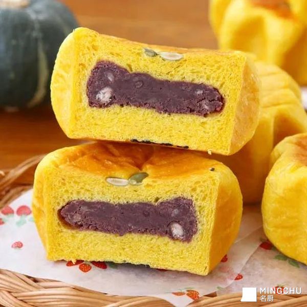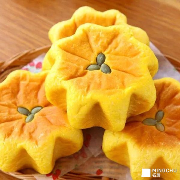 南瓜豆沙花花包 面包颜色金灿灿的、隔夜也松软。搭配自己炒的红豆馅 儿、 香香甜甜 我用的风和日丽的八角模、 如果没有的话、直接做成圆 形面包也可以。
