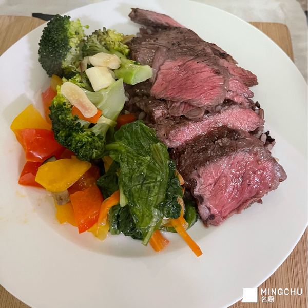 青紅黃椒、蕃茄、香菇、豬胛心肉、紅蘿蔔