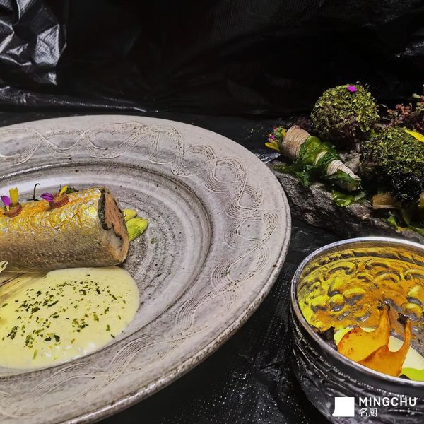 选用胶东小海鲜搭配本地特色食材汤做的一道法餐