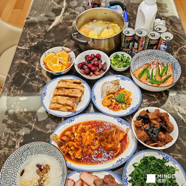 其中有以下几道菜是上海年夜饭传统菜:四喜烤麸、全家福、年年有鱼、八宝饭、春卷、酒香草头