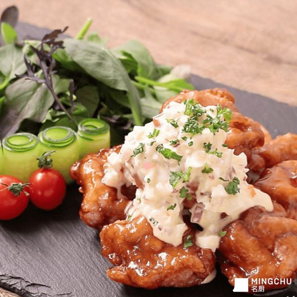 这次我们使用了紫洋葱来制作塔塔酱,但也可以用黄瓜、腌黄瓜、薤等来制作,同样美味。将炸好的鸡肉在还热的时候淋上甜醋酱,利用余温使酱汁变得浓稠。