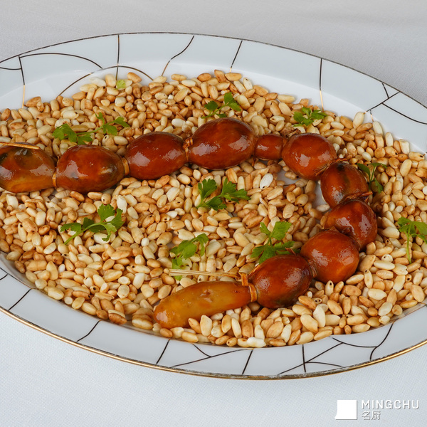 借鉴几近失传的潮州经典手工菜肴“龙穿虎肚”,创新加入30年老菜脯和许榕干鲍,口感层次更丰富,也提升了菜品的价值感。与此同时,30年老菜脯也象征着我本人入行30年的纪念。