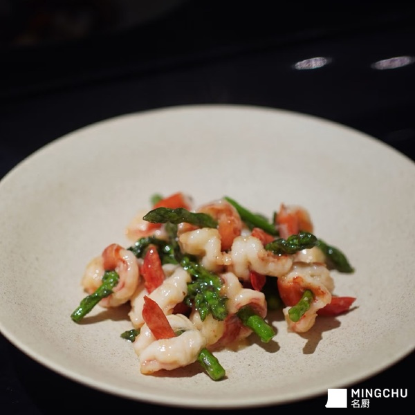 将鲜嫩的虾肉制成虾球,再搭配形似玉簪的蔬菜,不仅在造型上给人以精致、优雅的视觉享受,还在口味上实现了虾肉的鲜美与蔬菜的清新相互融合。