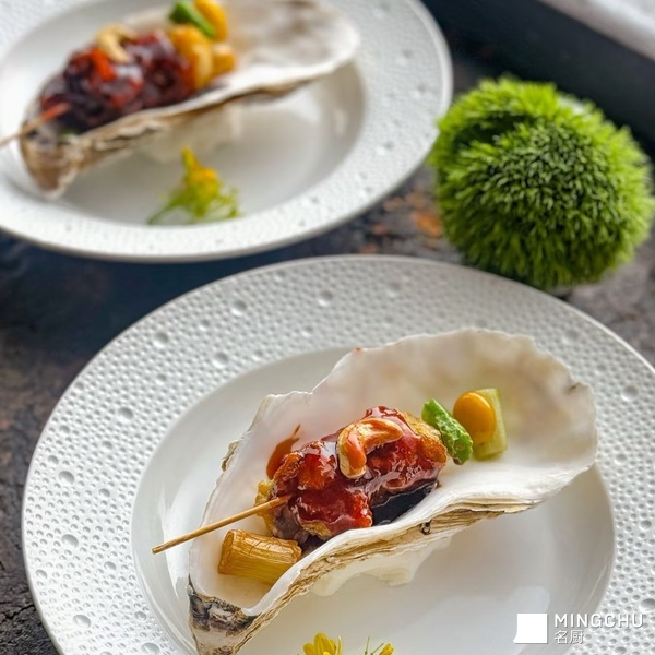 以生蚝壳为独特容器,打破常规的餐具选择,增添用餐的趣味性与视觉美感。