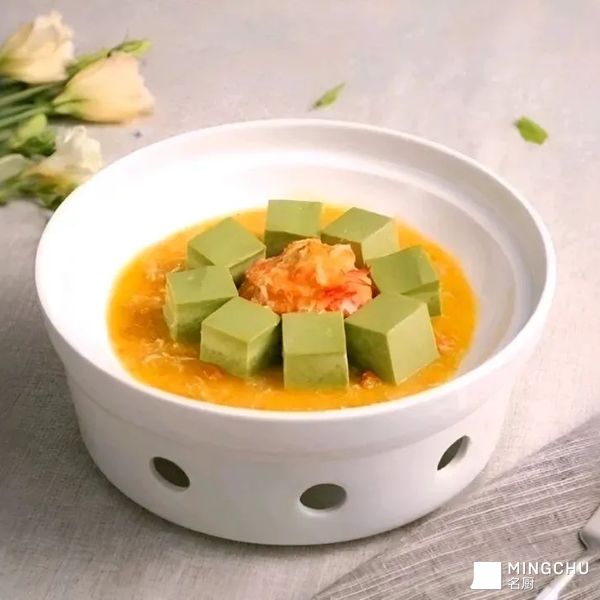 青豆腐中的大豆异黄酮具有抗氧化作用,有助于延缓细胞衰老,对皮肤状态的维持有一定帮助 ,还能在一定程度上调节内分泌。蟹粉、青豆腐的营养,能为人体提供丰富的优质蛋白,增强免疫力;不饱和脂肪酸和多种矿物质有助于保护心血管、强健骨骼。