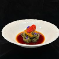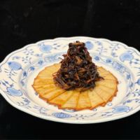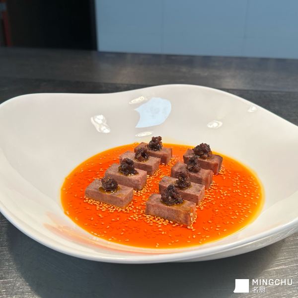牛舌用川式卤水煮熟后搭配菌菇酱,口味糯滑香嫩。