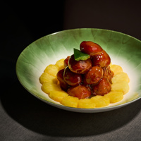 伊比利亚黑猪以其珍贵的部位和绝妙的口感,赢得了全球美食家的喜爱。这些部位包括里脊肉、小里脊、五花肉等,每一块都让人回味无穷。而本道菜使用的西班牙梅羽肉Pluma是猪肩脖上的两块小猪柳,形状像羽毛,口感超级柔嫩,肉汁丰富,甚至让人误以为是在吃和牛。