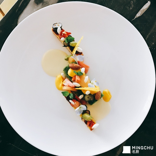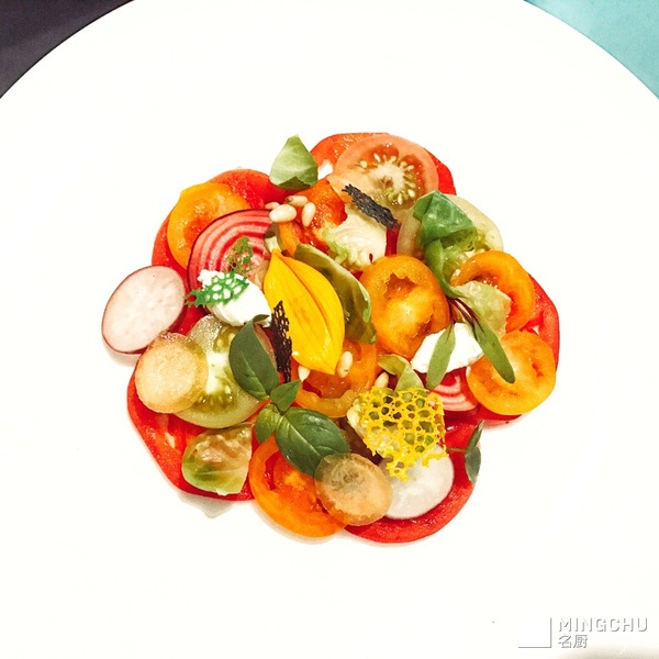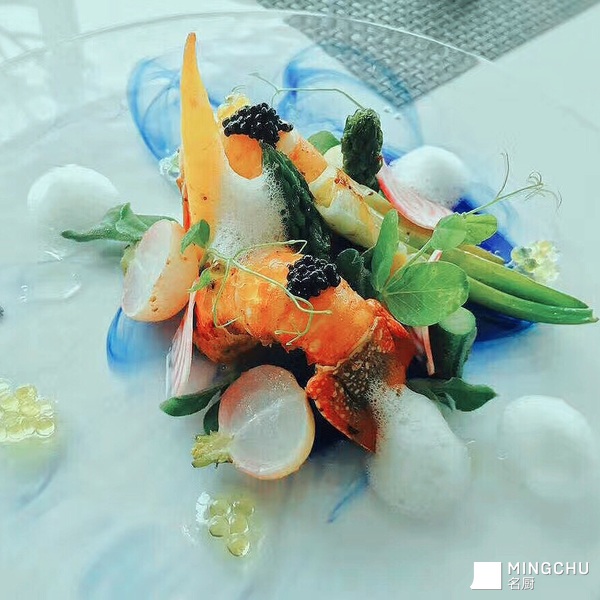 春,白,白,三文鱼,瑶柱,白,五彩番茄,肉眼,龙虾仔。