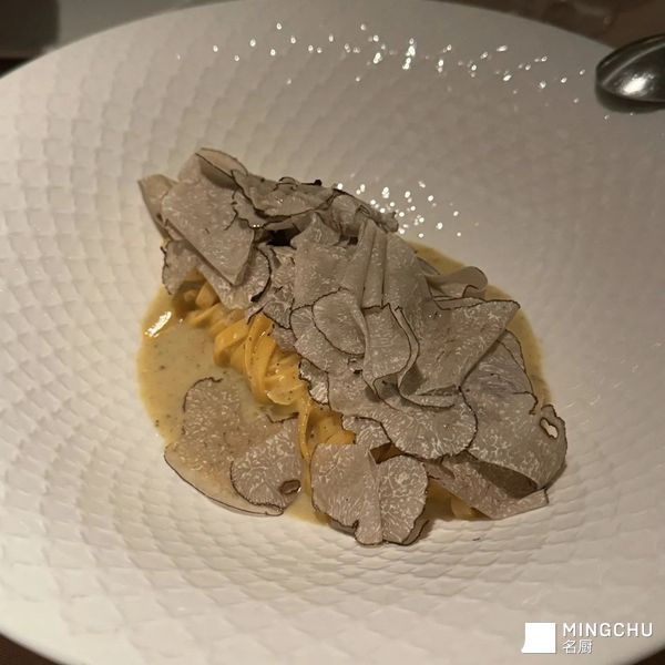 黑松露手工意面:意式奢华的舌尖狂欢 这道黑松露手工意面,是意式料理“奢华感”的绝佳诠释。手工宽面劲道弹牙,每一根都裹满醇厚的奶油酱汁,浓稠却不腻口。最点睛的是铺满表面的大片黑松露,现刨的薄片带着森林的幽郁香气,与奶香、麦香交织,入口先是松露的馥郁在舌尖炸开,继而尝到意面的扎实与酱汁的丝滑,层次丰富得像一场味觉的交响乐。在精致的纹理瓷盘衬托下,视觉与味觉双重盛宴,每一口都是意式料理的匠心与奢华,是松露爱好者绝对不能错过的经典美味。