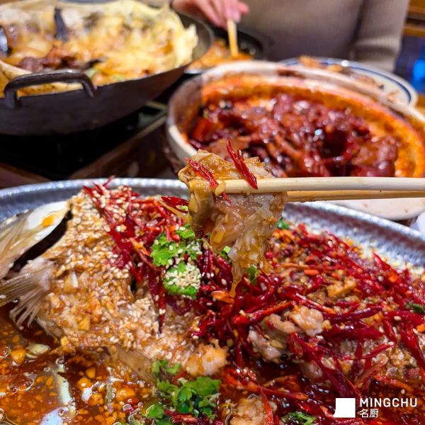 那鱼,是极鲜活的模样。我们平日里说“鲜”,总带着些抽象,可在这里,“鲜”却有了筋骨,有了体温。它静静地卧在清汤里,周身是浅浅的、温柔的皲裂,那是先前花刀的功劳,让热力得以均匀地透入肌理。鱼肉是那种蒜瓣似的白,一大片一大片的,用筷子轻轻一拨,便顺从地脱落下来,颤巍巍的,含着饱满的汁水。入口,是意料之中的嫩滑,但更妙的,是那一丝姜片与水共同滋养出的、不着痕迹的清甜,仿佛为后续那场浓墨重彩的味觉盛宴,铺下了一张素净而高雅的底布。