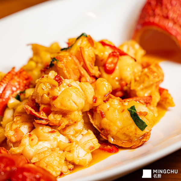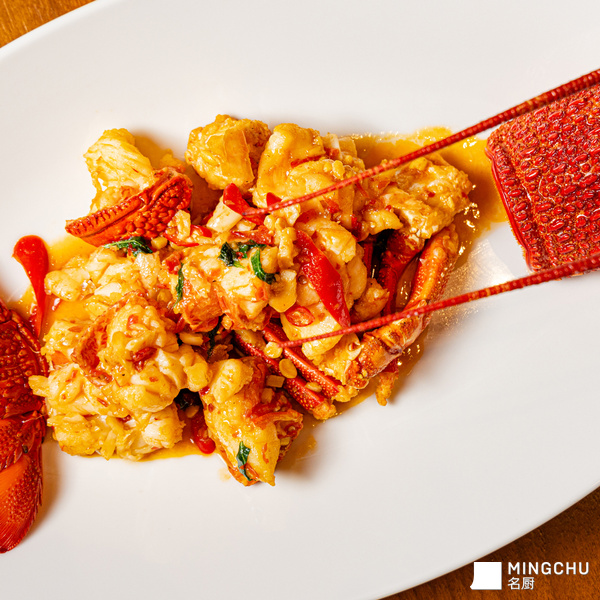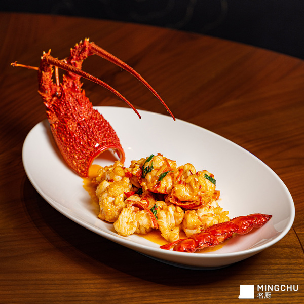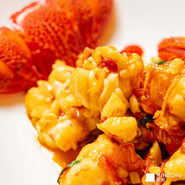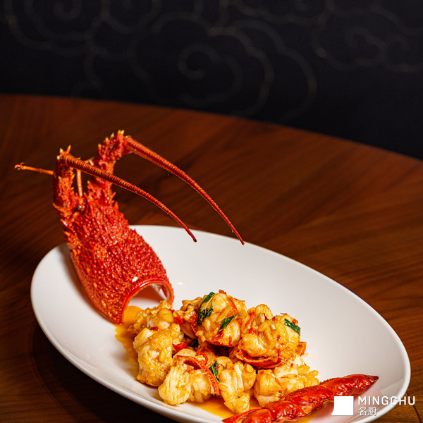最关键的是做到龙虾有味有汁,并保持一点溏心,达到断生刚熟的状态,就需要快速去炒,先过一下油,然后猛火 15 秒,注意不能太老,否则肉质肌理较粗,口感发柴。