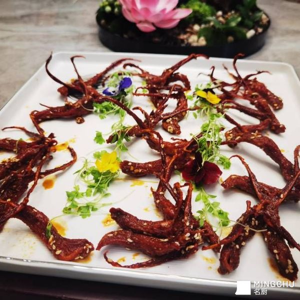 1:鸭舌清理干净,先加姜葱、盐、白酒,经过腌制再焯水去味洗净沥干水分待用.2:再下入卤水进行卤制浸泡,捞出之后沥干卤汁备用。3:锅上火油锅烧制160度再下入卤制过的鸭舌炸至色泽金黄外酥内嫩时捞出沥干油份。4:锅上火下入辣椒面、炒香出色,再下入花椒面,自制五香粉稍微加热,下入鸭舌再下入白糖,盐,味精,鸡精调味、烹入啤酒收汁,到油亮起锅加花椒油,香油,撒芝麻起锅装盘即可!