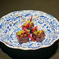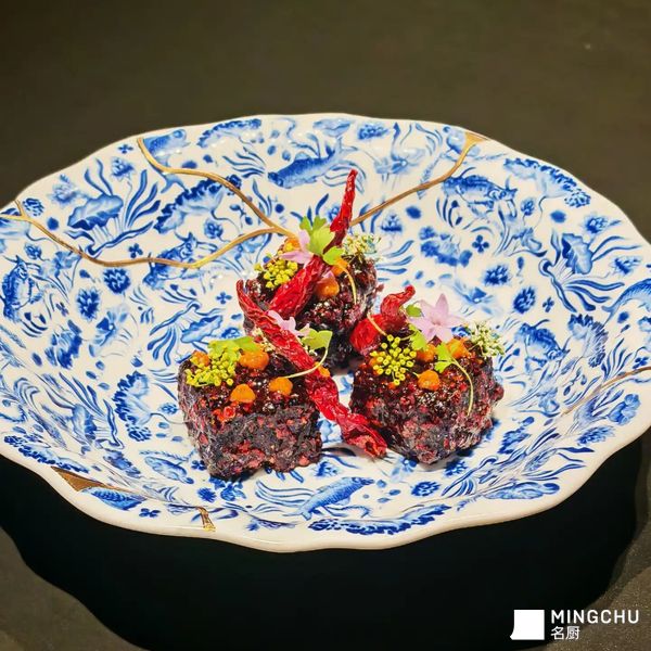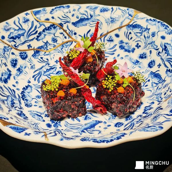 川菜的“魂”,在于其风味哲学、烹饪智慧与人文温度。味魂之守:复合酸辣,泡椒定调技魂之守:发酵智慧,底蕴之源料魂之守:本土之味,点睛之笔川菜的“形”,需要顺应时代的食材、审美与健康理念。食材之形:顶级牛肉,升华体验技法之形:低温慢煮,科技赋能呈现之形:解构意境,清雅美学椒香酵艺这个主题,做了一次怪味和牛全新升级。M9+牛小排浸入发酵泡椒酱用低温慢煮赋予底味。再用四川本土辣椒制作刀口辣椒面制成传统怪味。