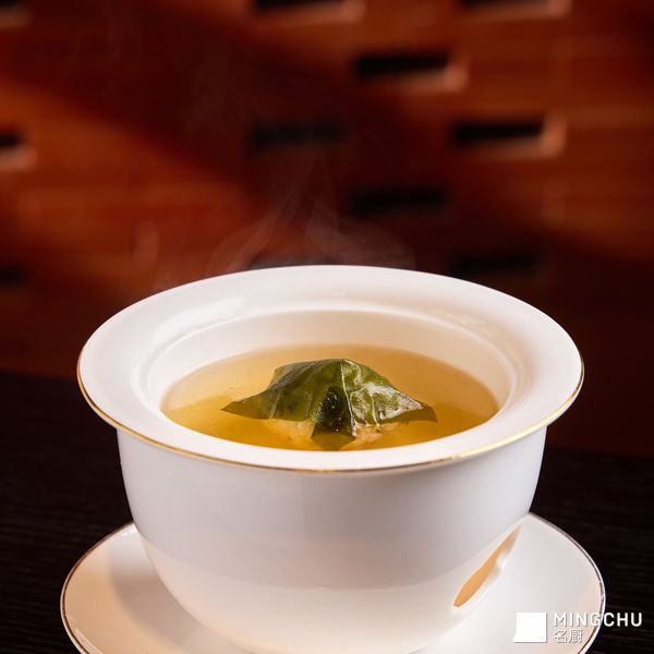 菜品特点在于手工捶打的午鱼狮子球,松软的口感中蕴含马蹄与鲜笋的清脆;汤底以永春白鸭、干贝、翅骨和排骨炖制,加入发酵永安鸡爪椒,鲜香微辣,风味平衡;整体融合山珍白鸭与海味清鲜,体现闽地地缘文脉,火候精准确保狮子球细腻口感,海带苗增鲜,简约调料突出食材本真之味。